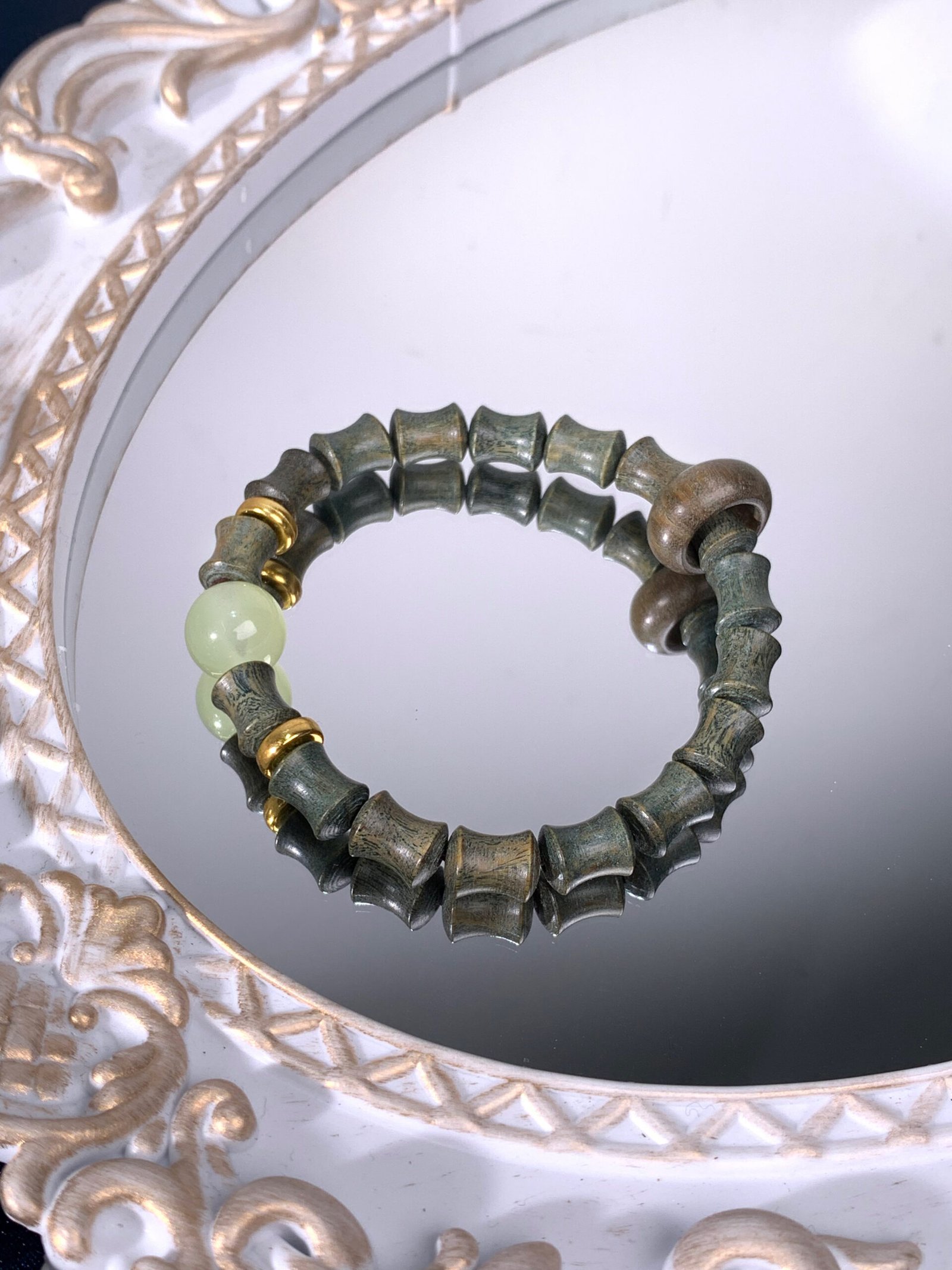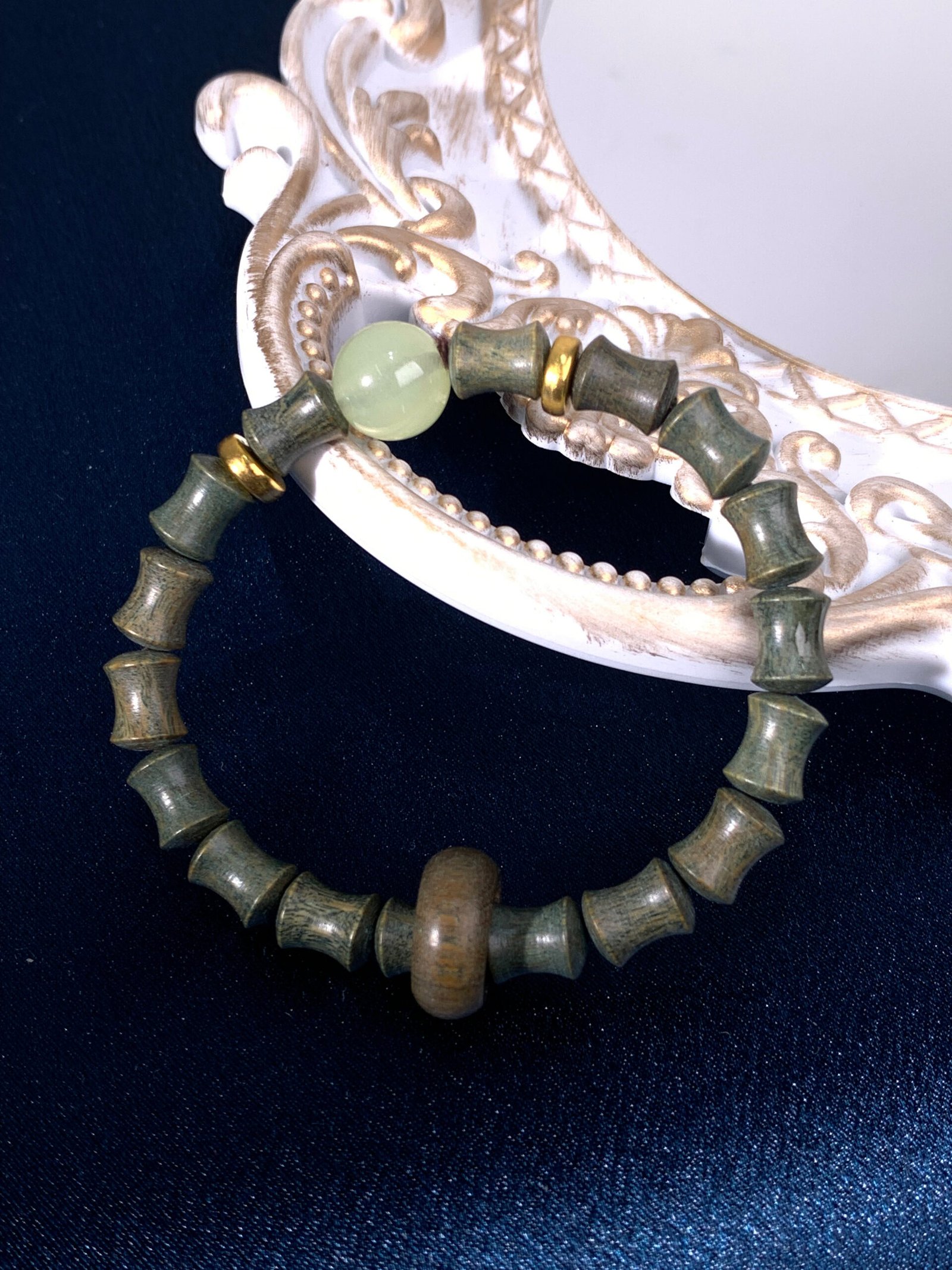 【Wooden Cosmos】Green Sandalwood & Jade Bracelet